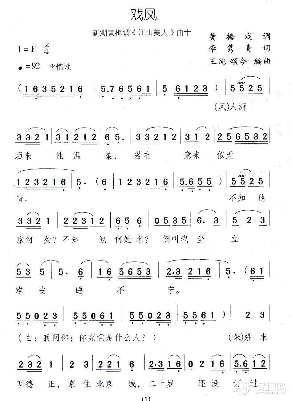 戏曲曲谱凤姑娘快开门(新潮黄梅调《江山美人》曲七)