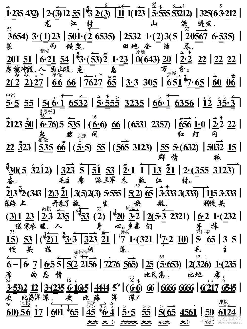 戏曲曲谱为亲人细熬鸡汤(《红云岗》选段、琴谱)