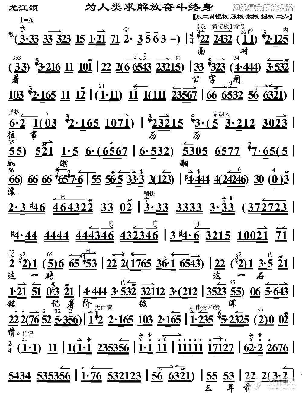 戏曲曲谱红岩上红梅开(《江姐》选段、琴谱)
