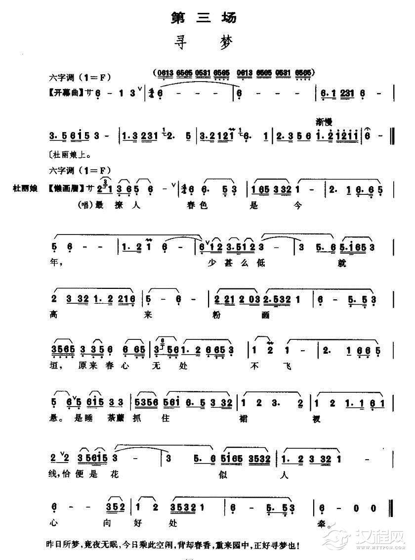 戏曲曲谱[昆曲]《牡丹亭》第二场:惊梦