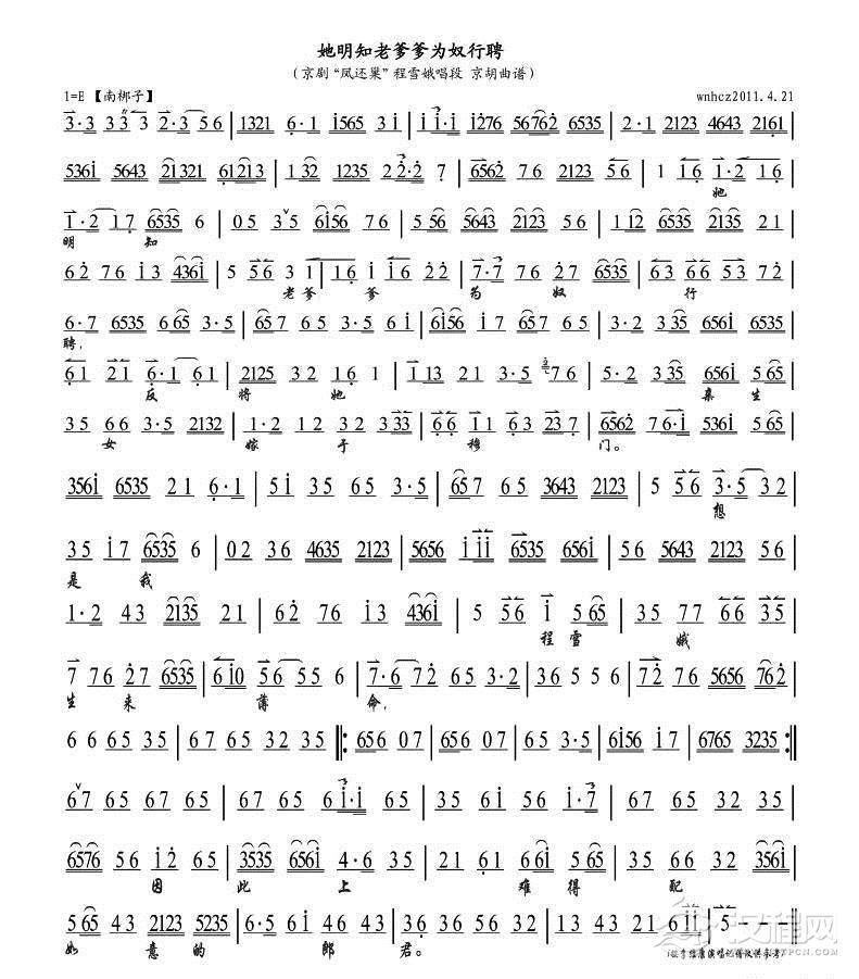 戏曲曲谱我和你北京生来北京长(《风雨同仁堂》选段、琴谱)