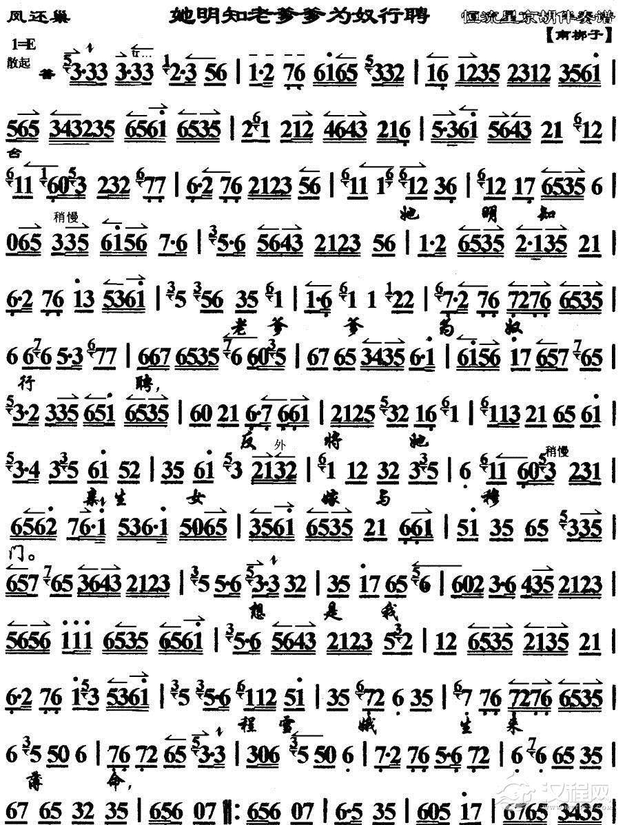戏曲曲谱桑园访妻(《何文秀》选段)