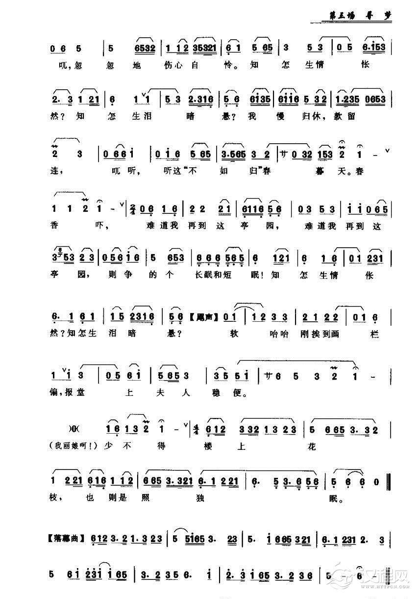 戏曲曲谱[昆曲]《牡丹亭》第二场:惊梦