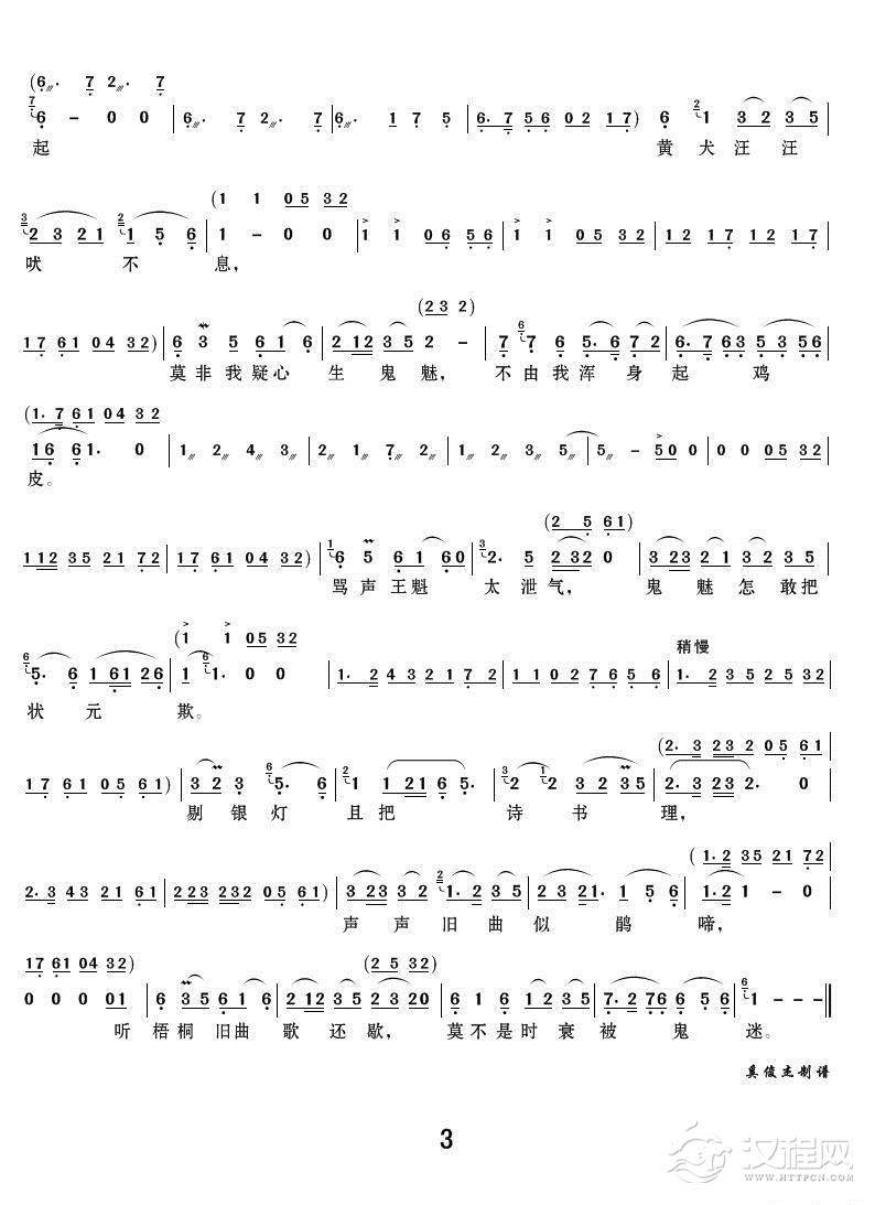 戏曲曲谱谯楼上二更鼓声声送听(《荒山泪》选段、琴谱)