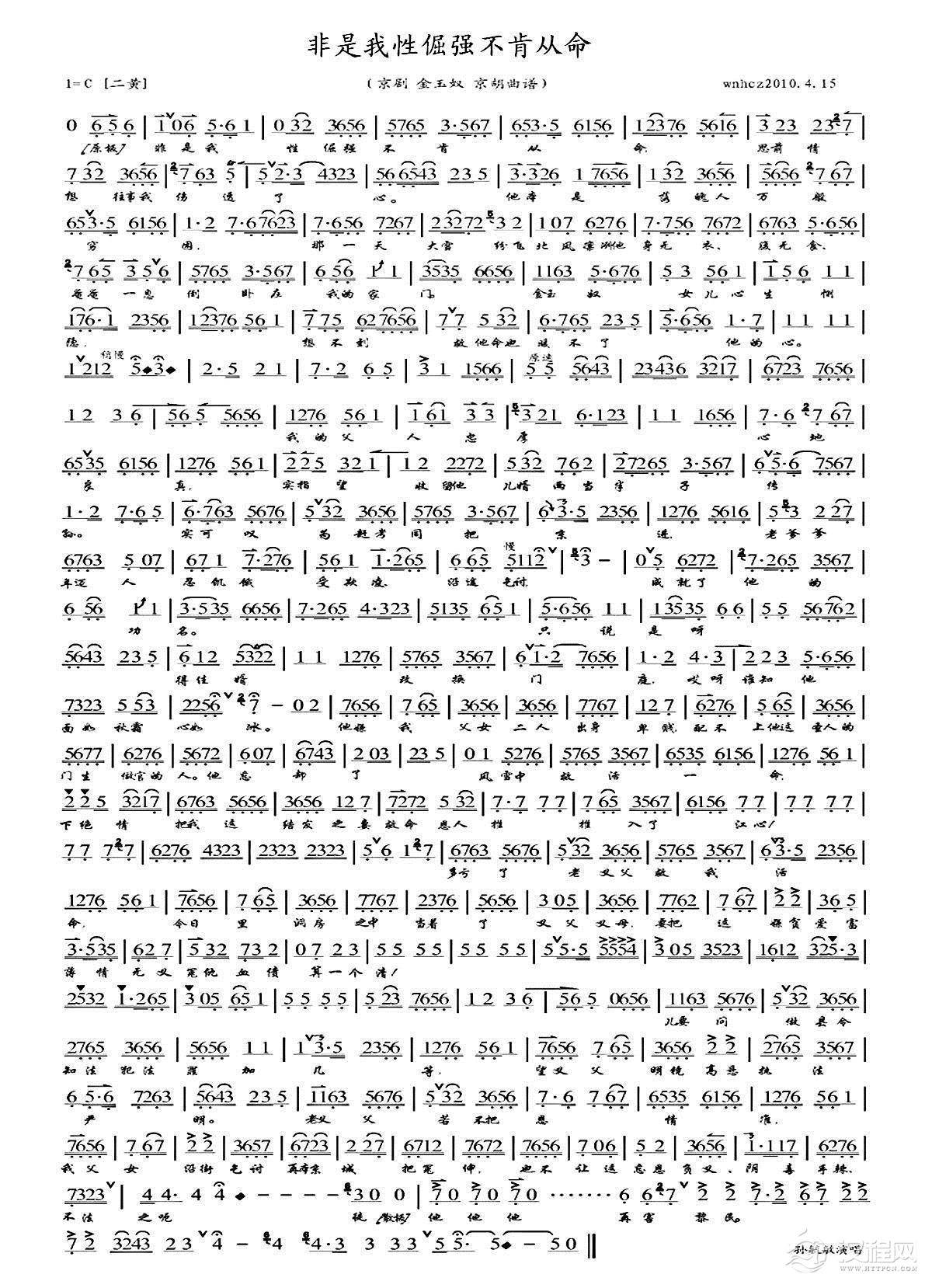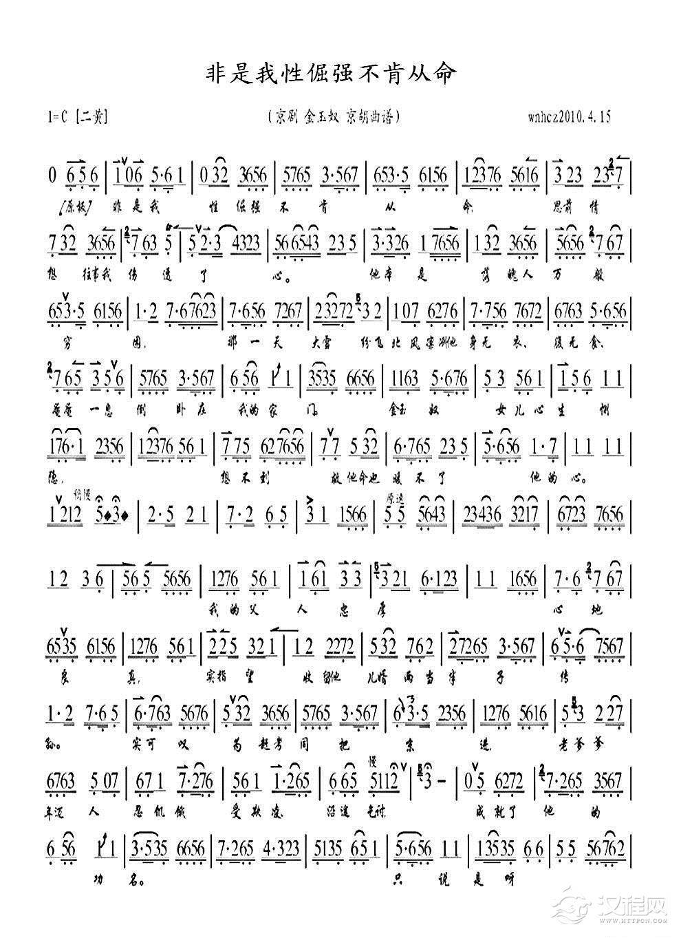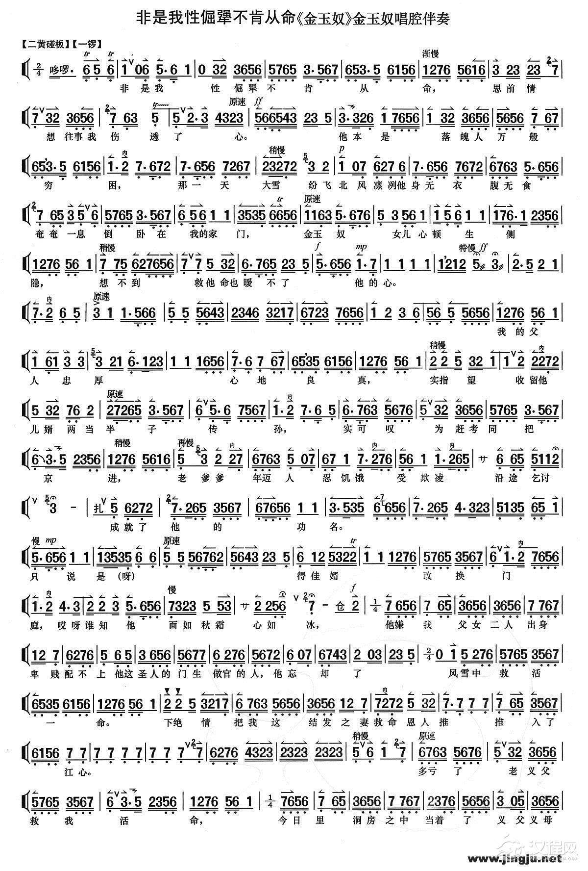戏曲曲谱狗贱人说的哪里话(《马前泼水》-选段、琴谱)
