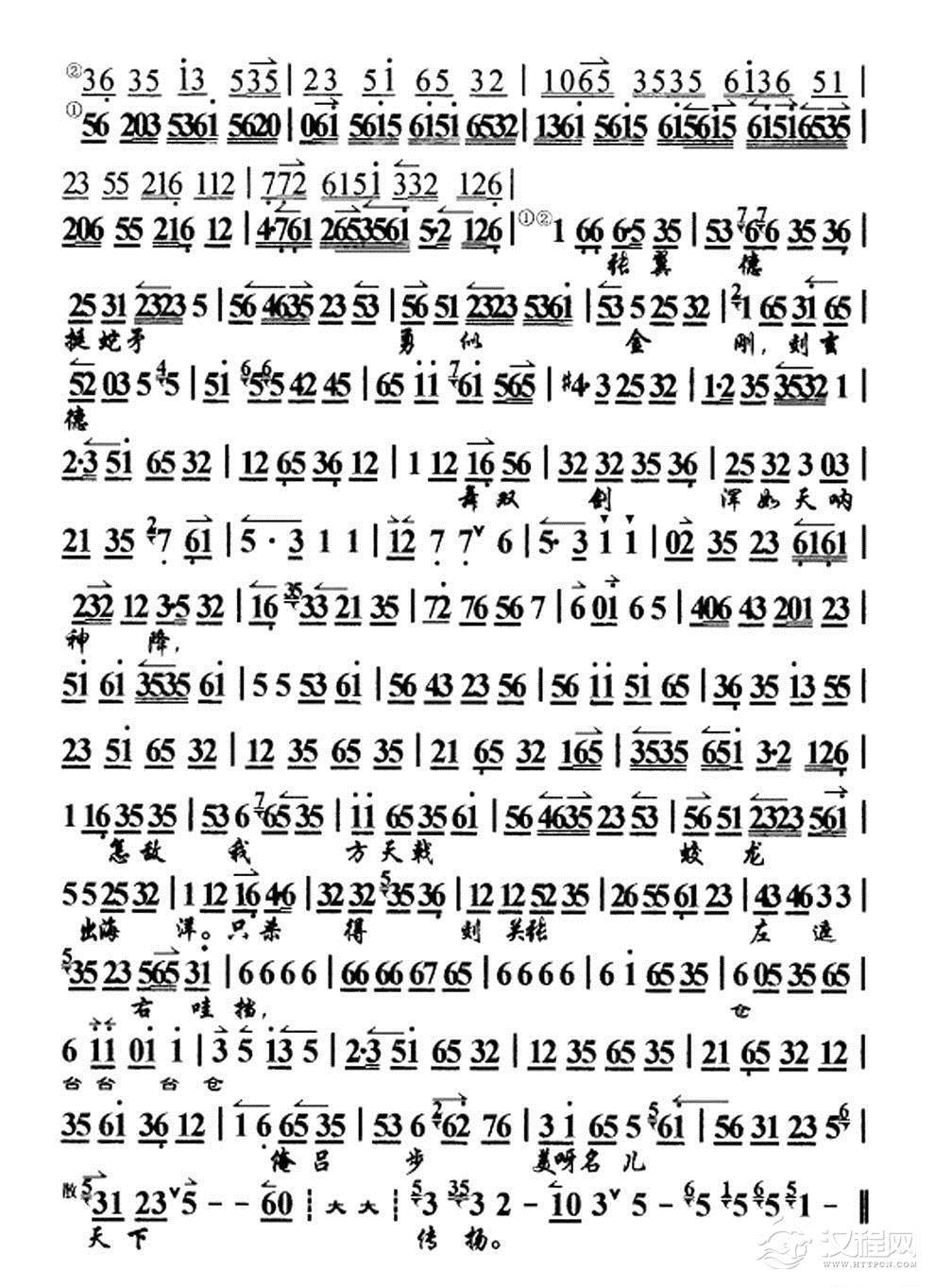 戏曲曲谱勒马停蹄站城道(《罗成叫关》选段、琴谱)