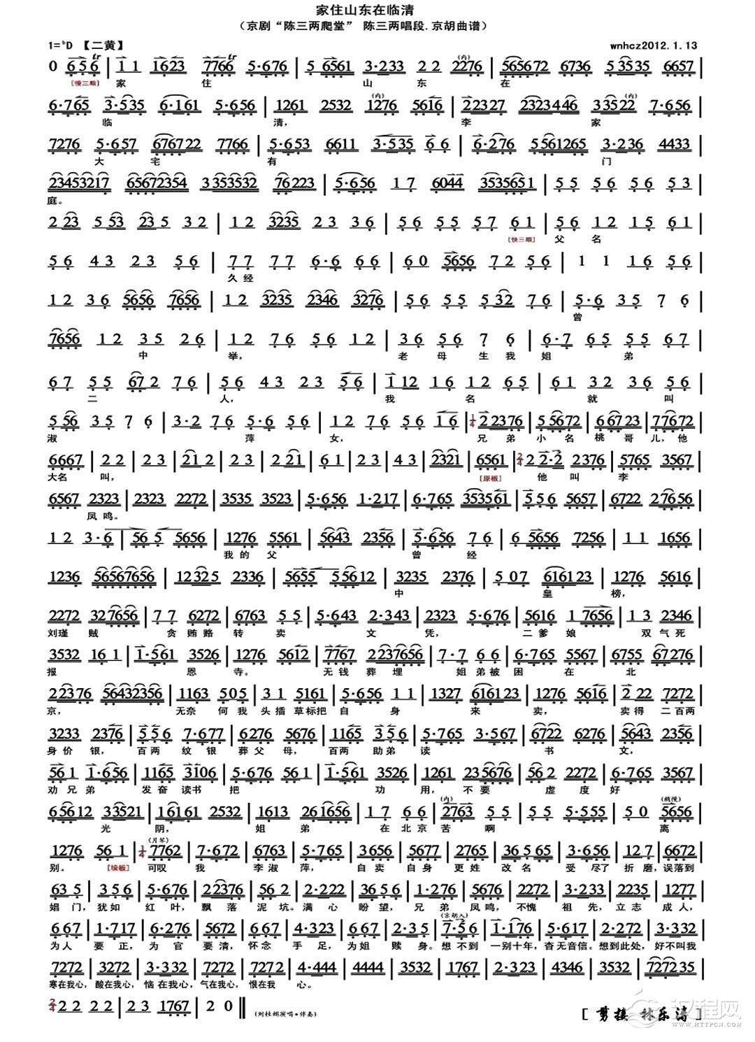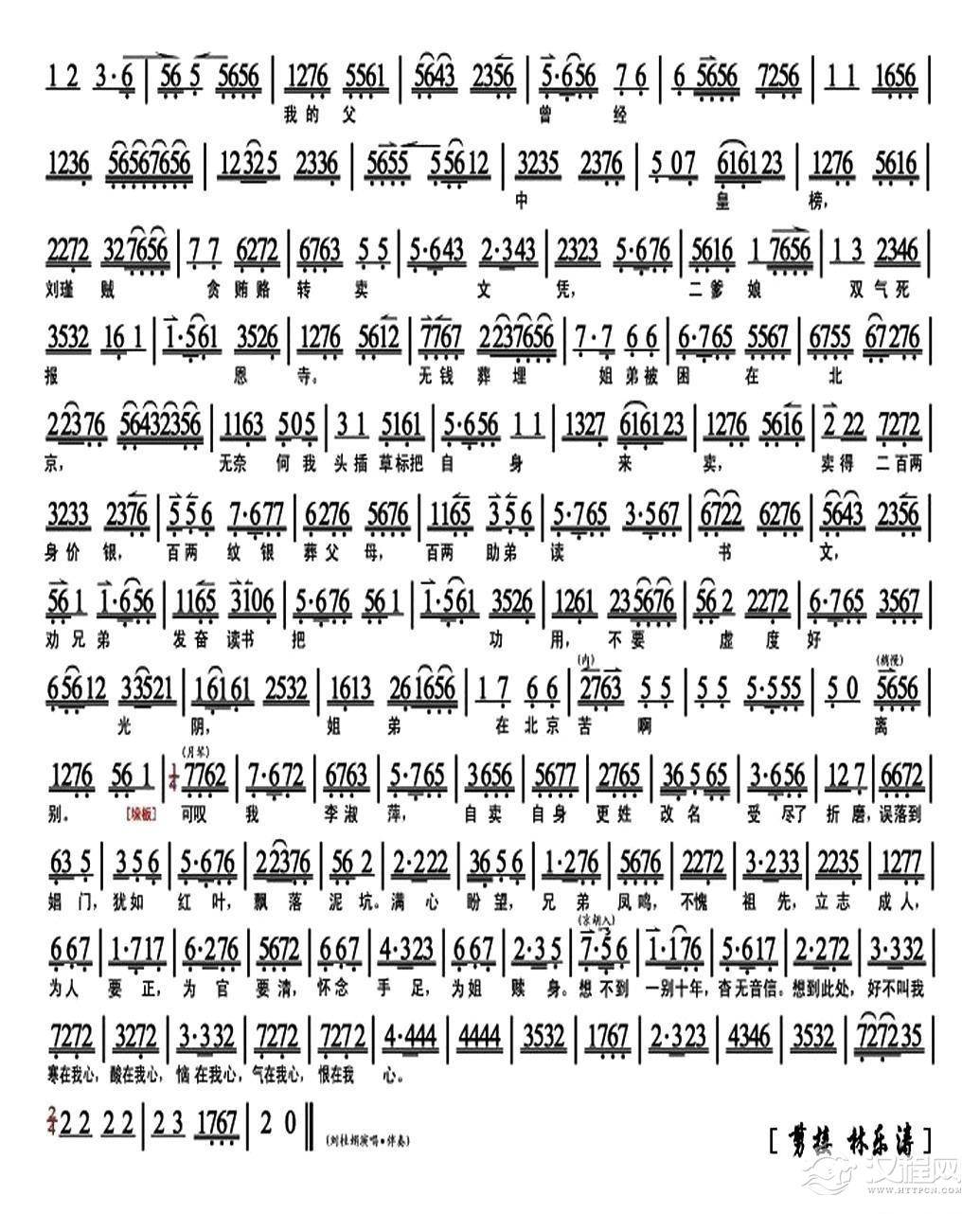 戏曲曲谱她明知老爹爹为奴行聘(《凤还巢》选段、琴谱 )