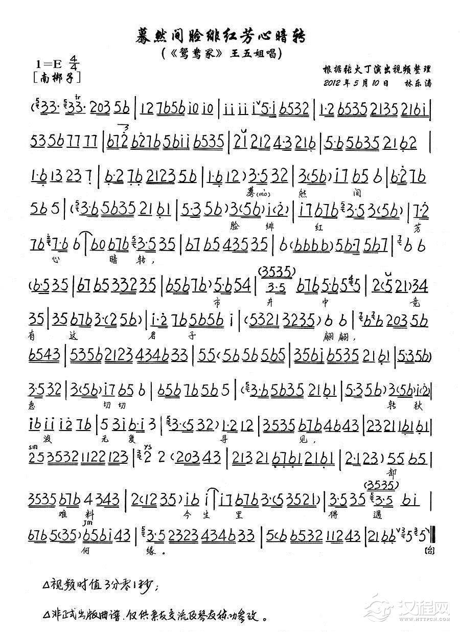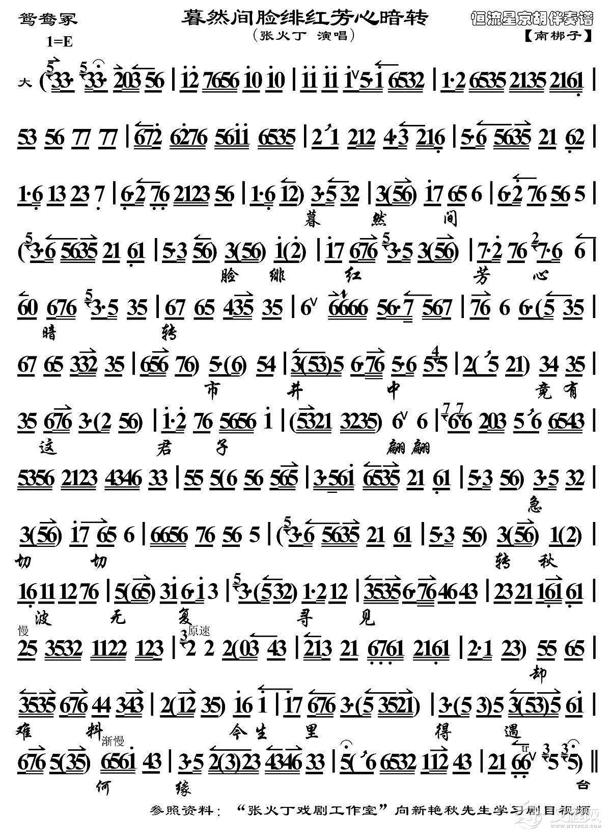 戏曲曲谱傻丫头你不要伤心落泪(《梅妃》选段、琴谱)