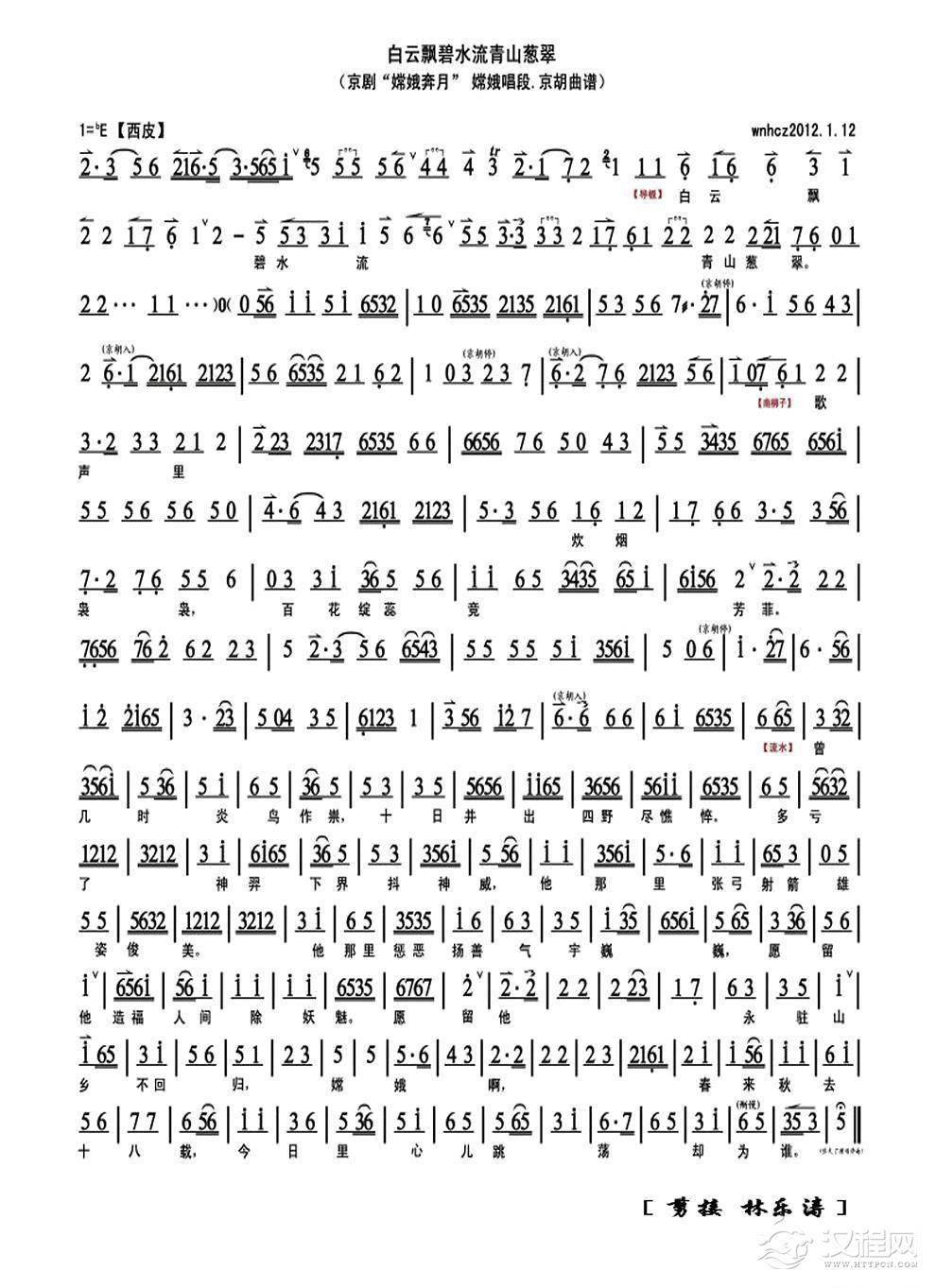戏曲曲谱傻丫头你不要伤心落泪(《梅妃》选段、琴谱)
