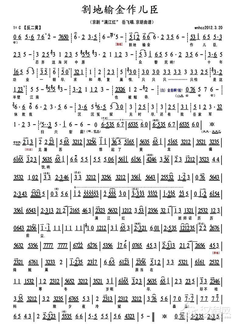 戏曲曲谱一篇肠断钗头凤(《钗头凤》选段、琴谱)