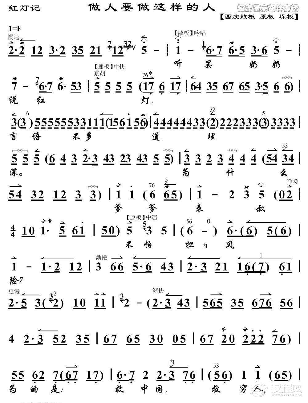 戏曲曲谱为亲人细熬鸡汤(《红云岗》选段、琴谱)