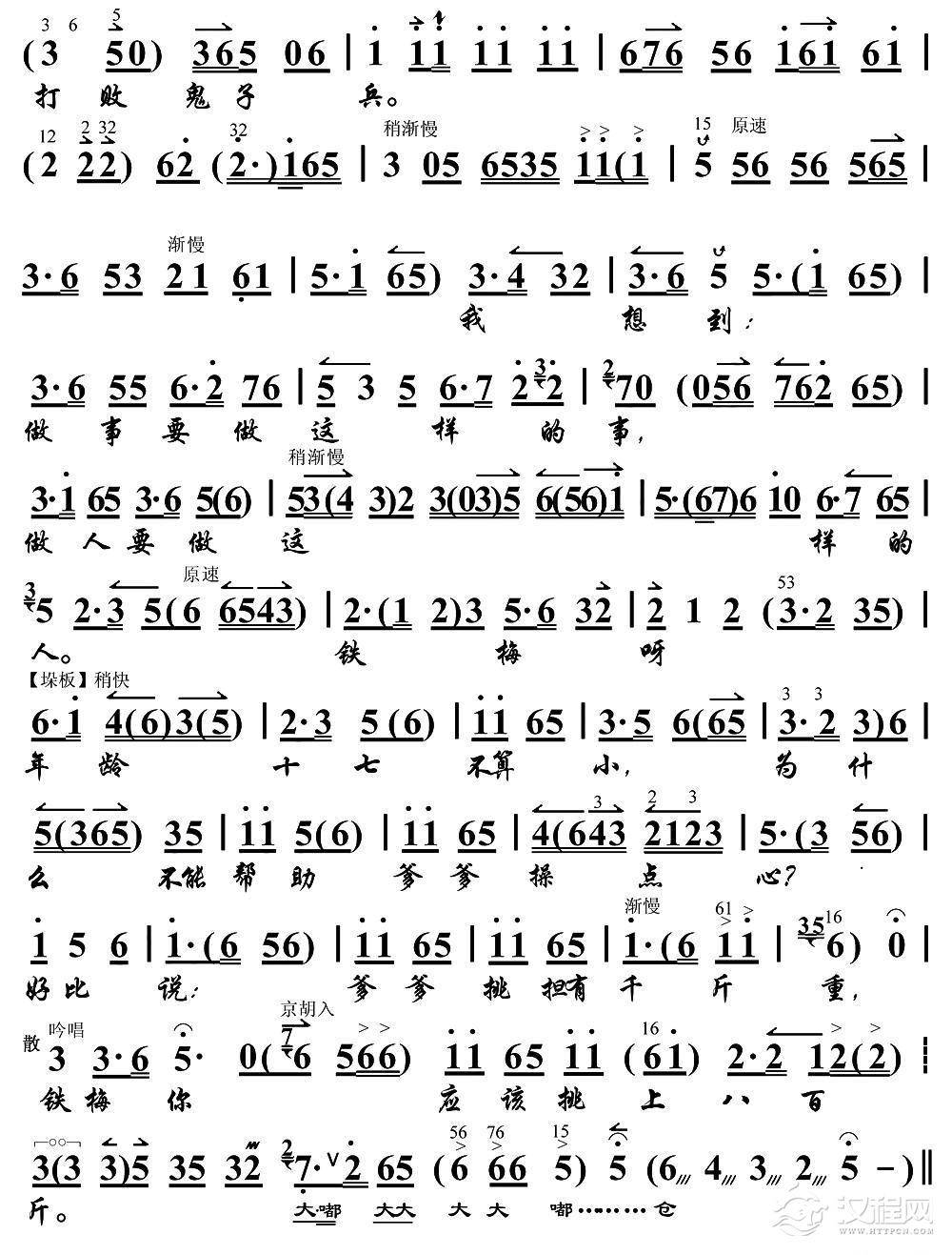 戏曲曲谱什么人似虎狼张牙舞爪(《海港》选段、琴谱)