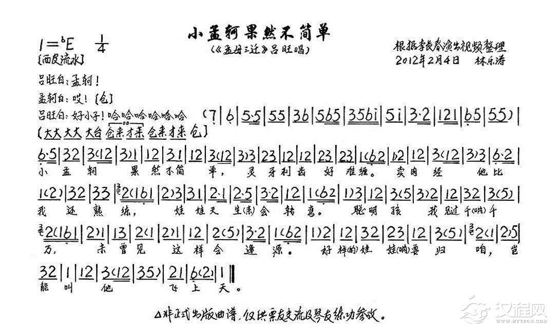 戏曲曲谱小孟轲果然是自暴自弃(《孟母三迁》选段、琴谱)