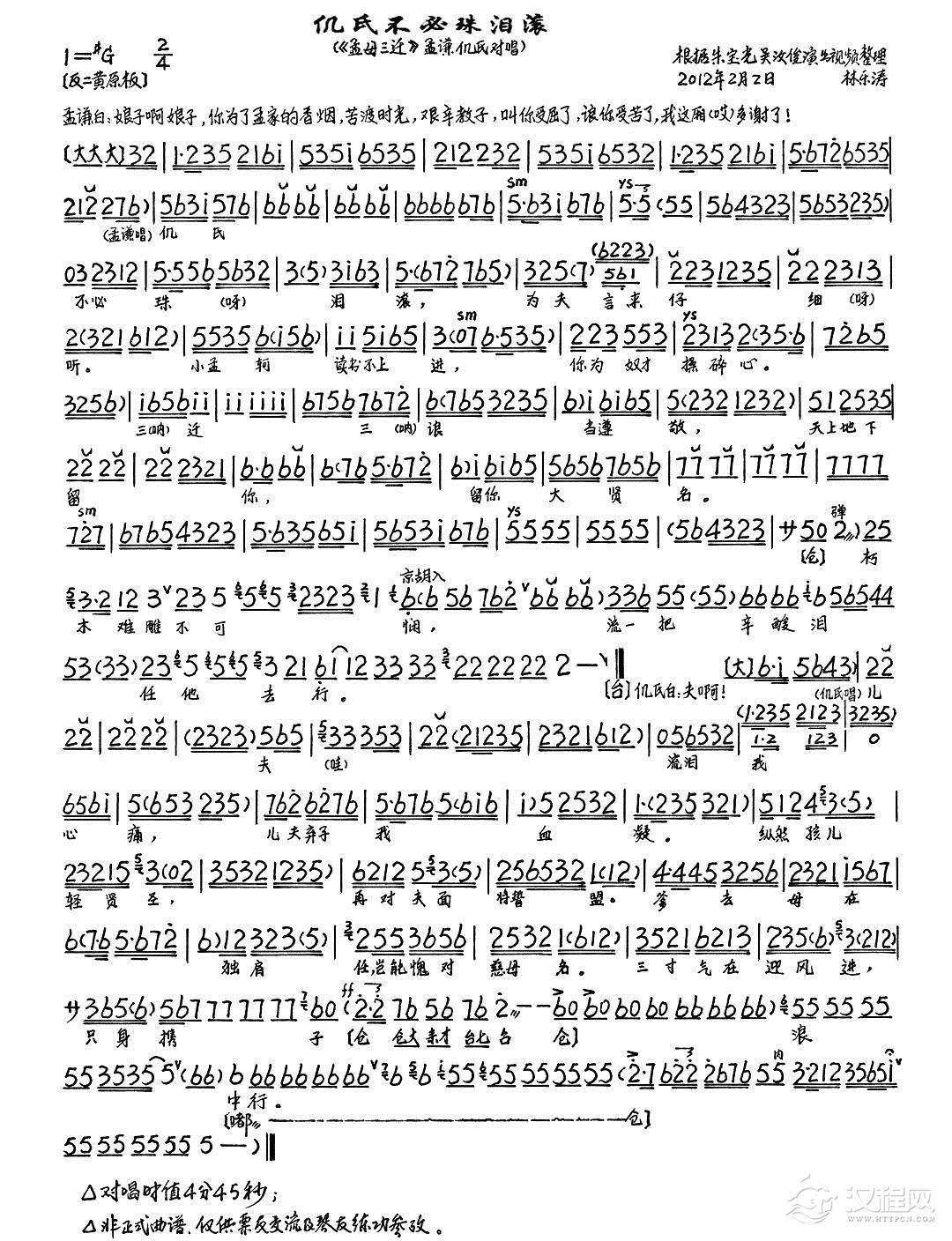 戏曲曲谱泪滴坟台又一年(《孟母三迁》选段、琴谱)