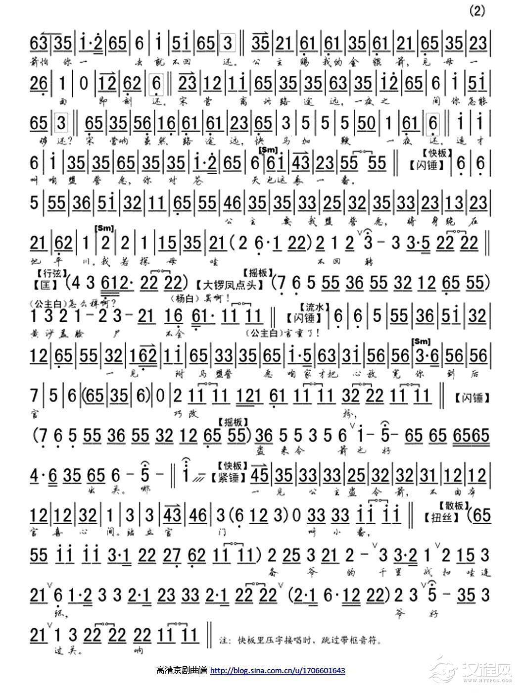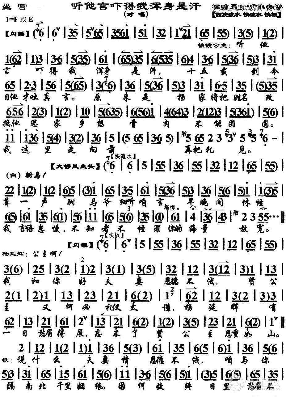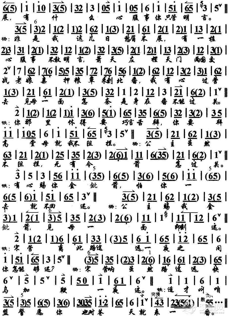 戏曲曲谱夫妻们打坐在皇宫院(《四郎探母》铁镜公主唱段、琴谱)