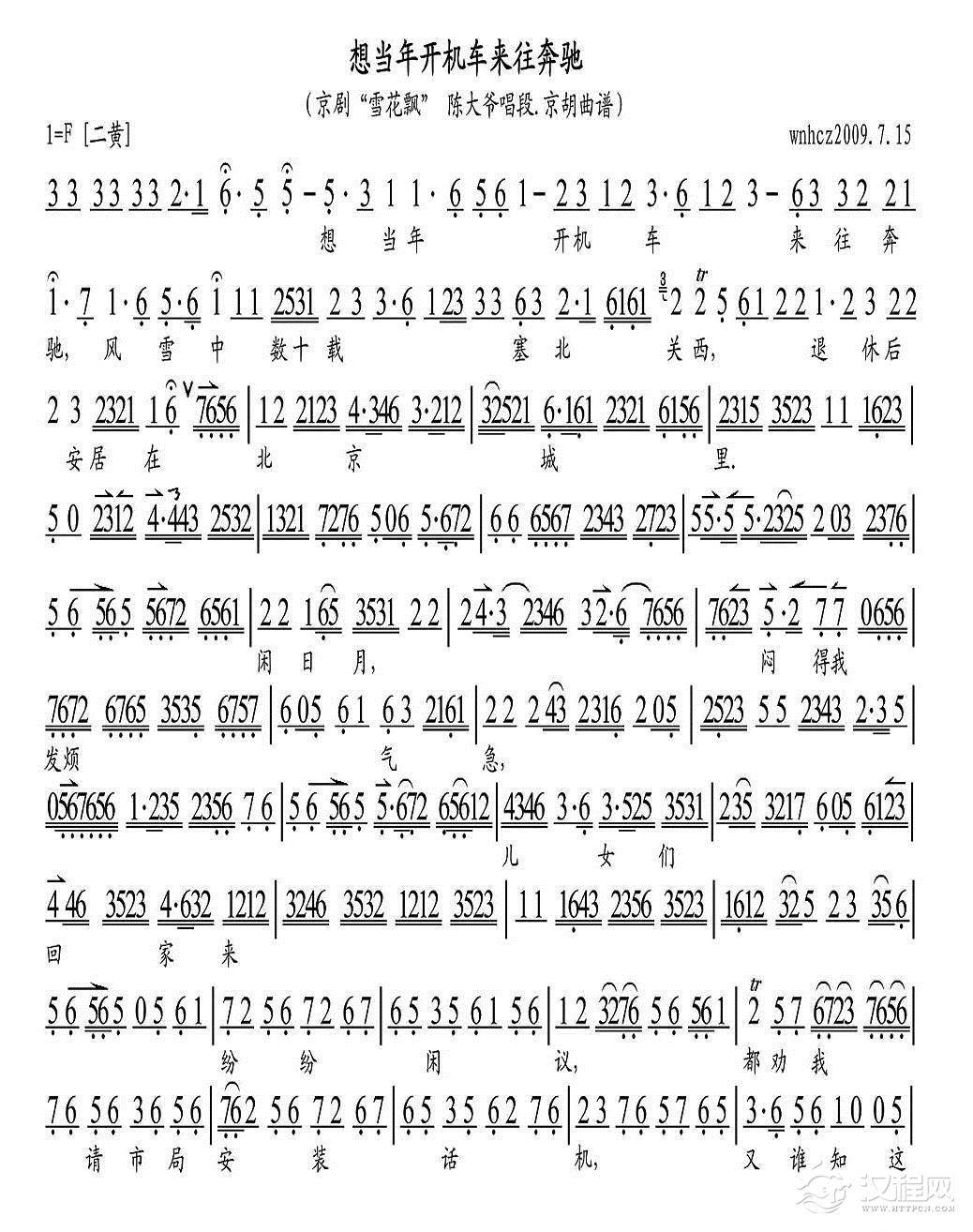 戏曲曲谱三年前你为赶考奔京城(《秦香莲》秦香莲唱段、琴谱)
