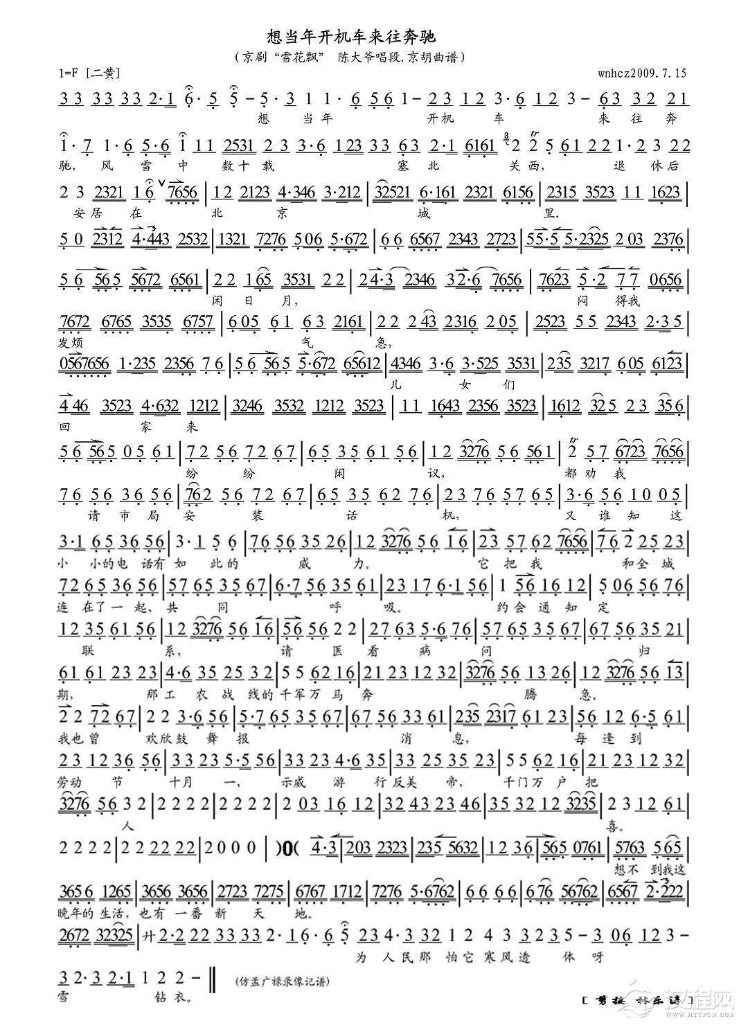 戏曲曲谱老师尊一席话三春暖(《孟母三迁》选段、琴谱)