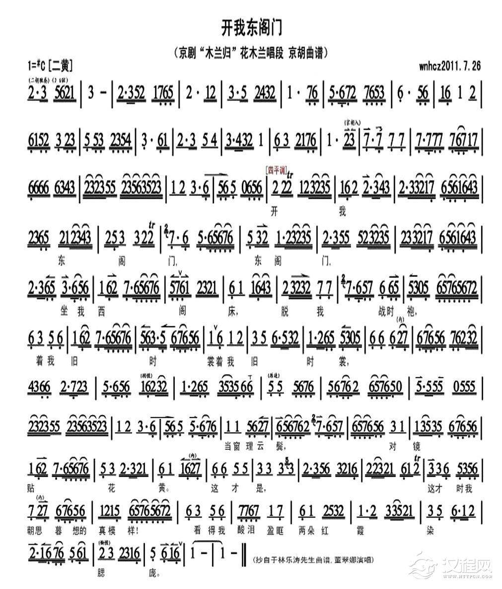 戏曲曲谱夫妻们打坐在皇宫院(《四郎探母》铁镜公主唱段、琴谱)