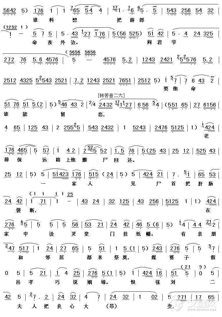 戏曲曲谱[秦腔] 忆往事心酸痛悲凉凄惨(《清风亭·盼子》选段)