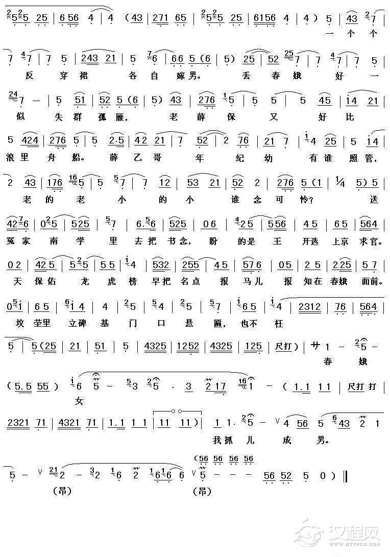 戏曲曲谱[秦腔] 河湾洗衣(全折曲谱、蔡玉科记谱版)