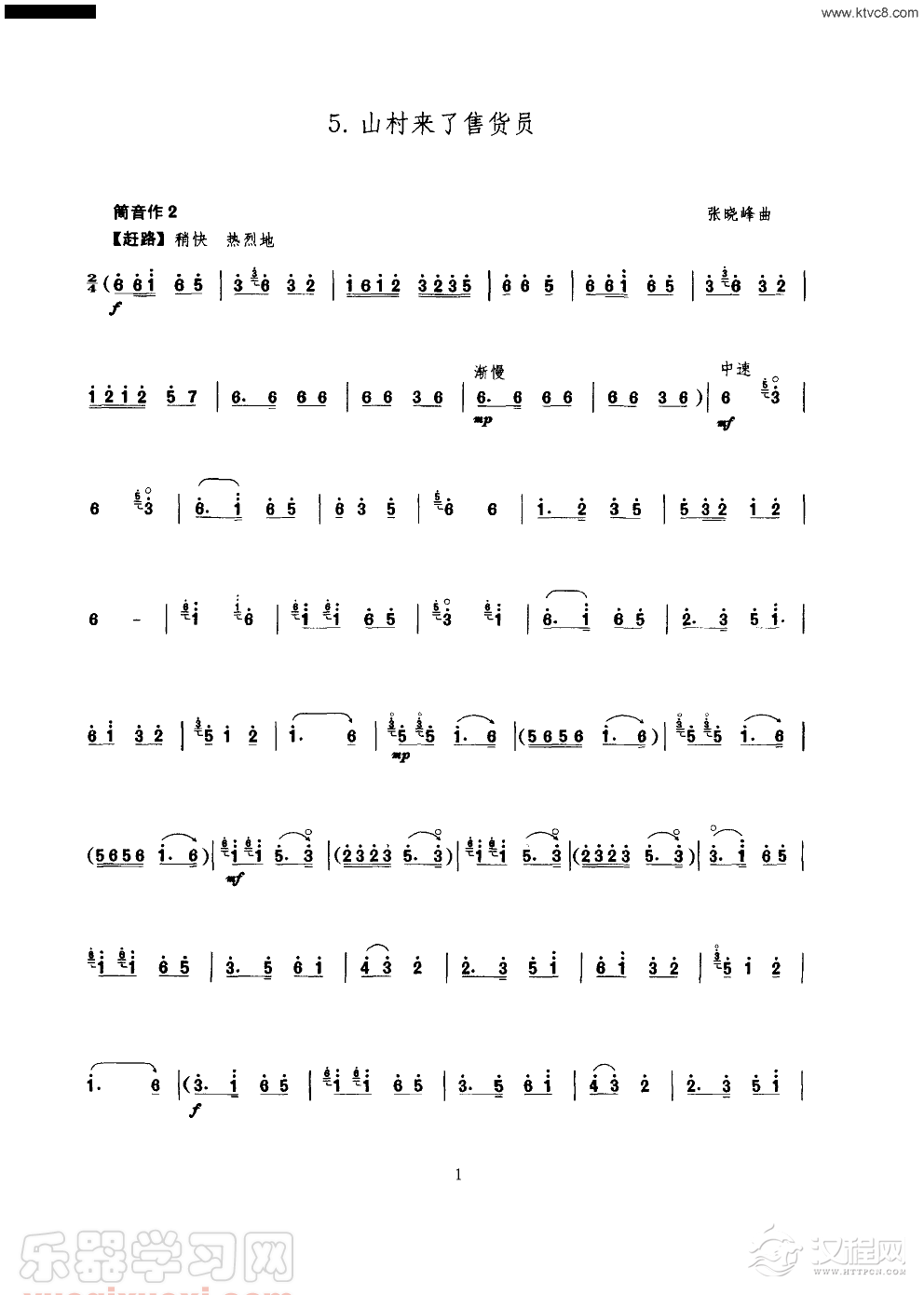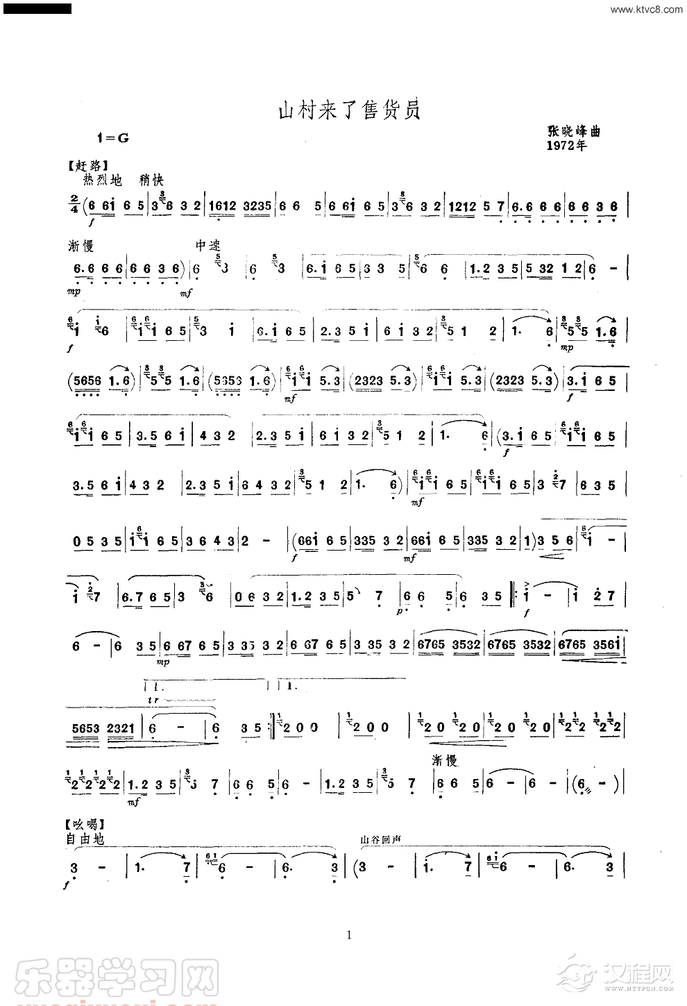 曲谱大全山村来了售货员(唢呐)(线谱)简谱