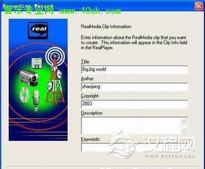 (3)接下来是设定输出Real文件的相关信息,比如文件名称、作者、版权、描述、查询关键字等,合理的设置所有的内容可以便于日后查找(图21)。