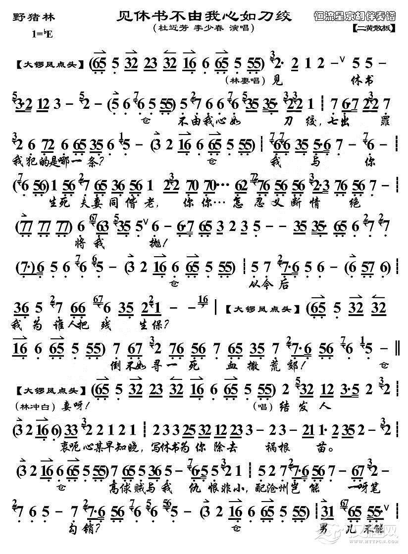 戏曲曲谱见儿夫不由人珠泪垂掉(《野猪林》选段)