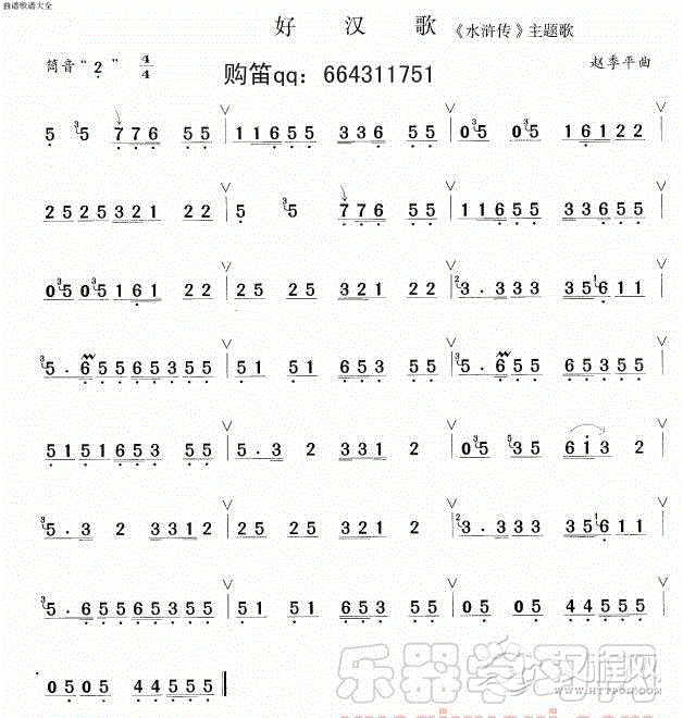 曲谱大全笛子曲谱-洪湖水浪打浪