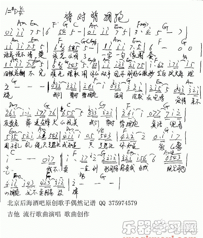 曲谱大全巴乌通俗乐曲《涛声依旧》陈小奇曲