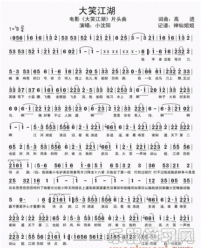 曲谱大全巴乌通俗乐曲《沧海一声笑》黄 沾曲