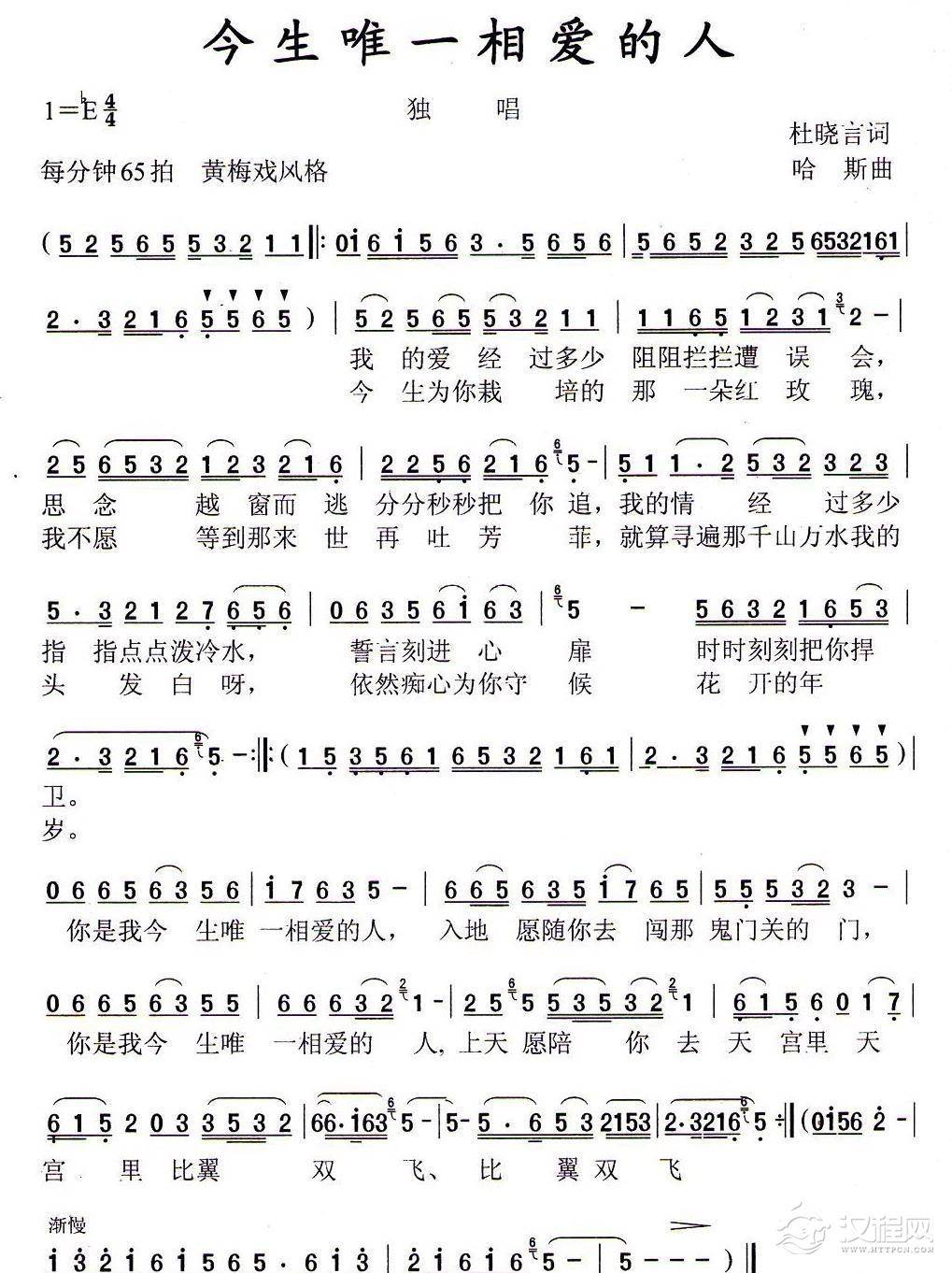 戏曲曲谱黄昏恋也别样美(黄梅戏戏歌)