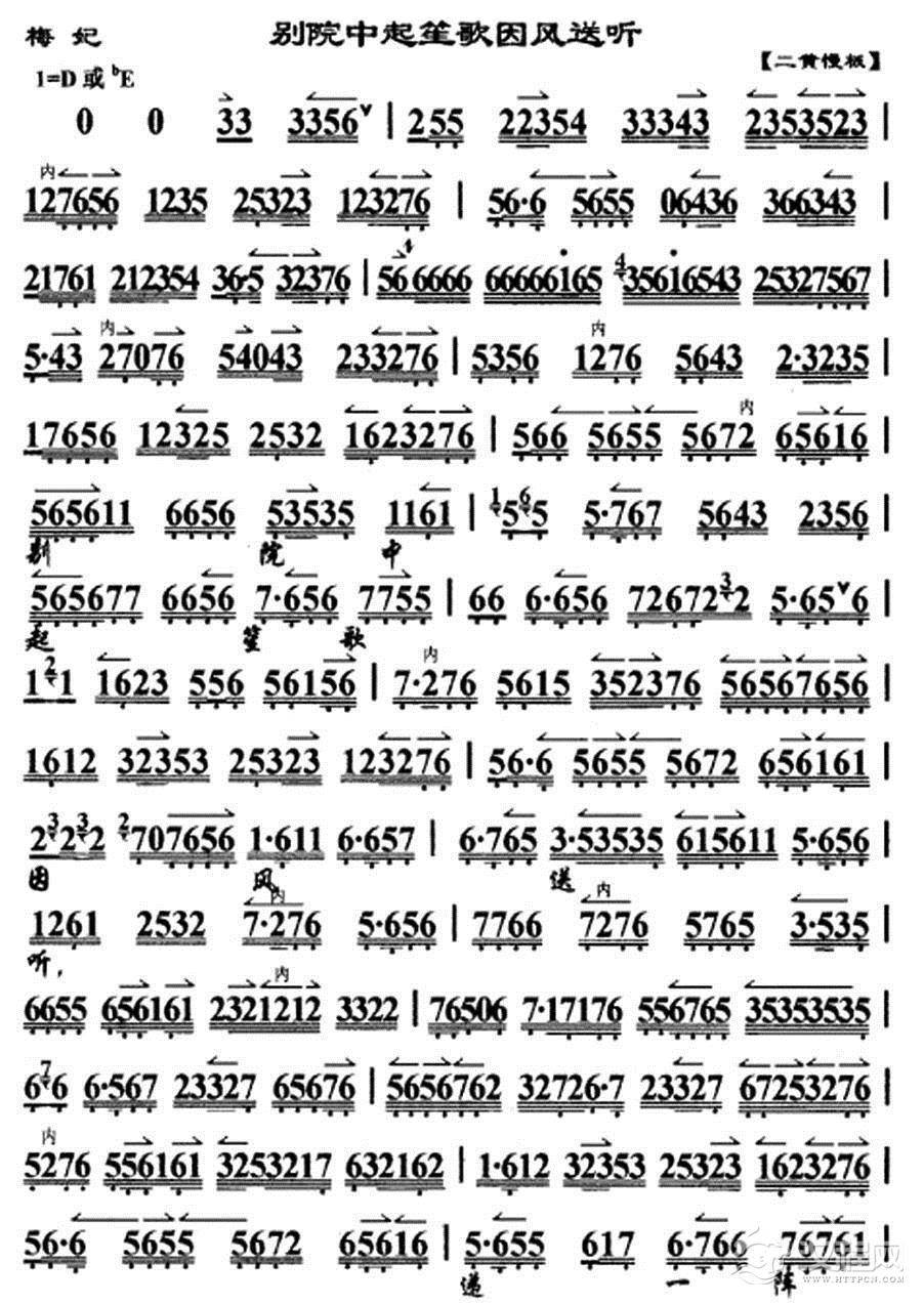 戏曲曲谱李艳妃坐昭阳自思自想(《大探二·二进宫》选段、琴谱)