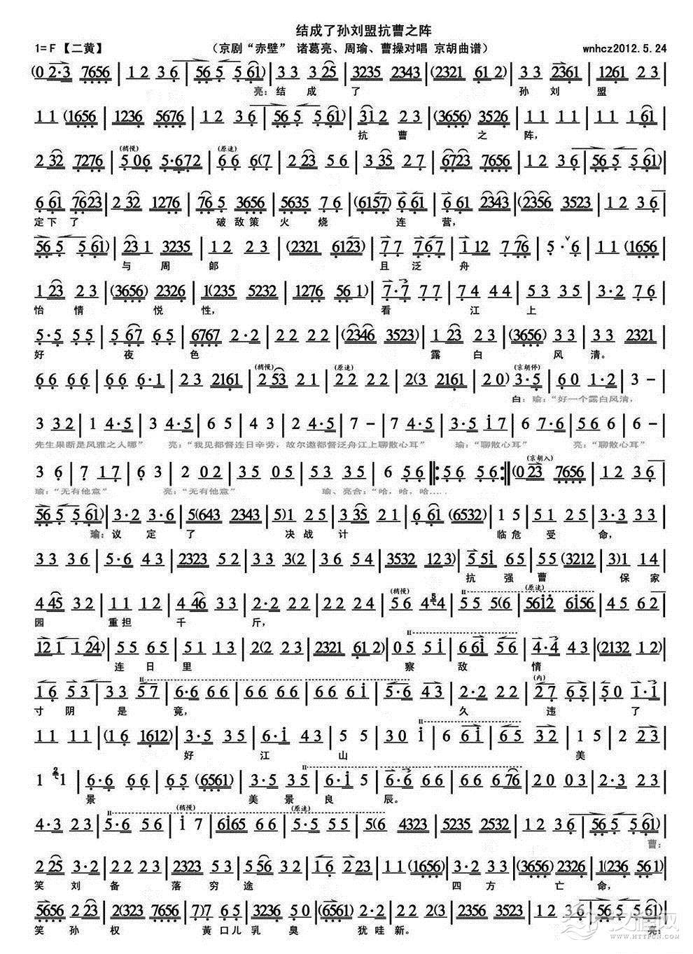 戏曲曲谱念奴娇·赤壁怀古(豫剧戏歌)
