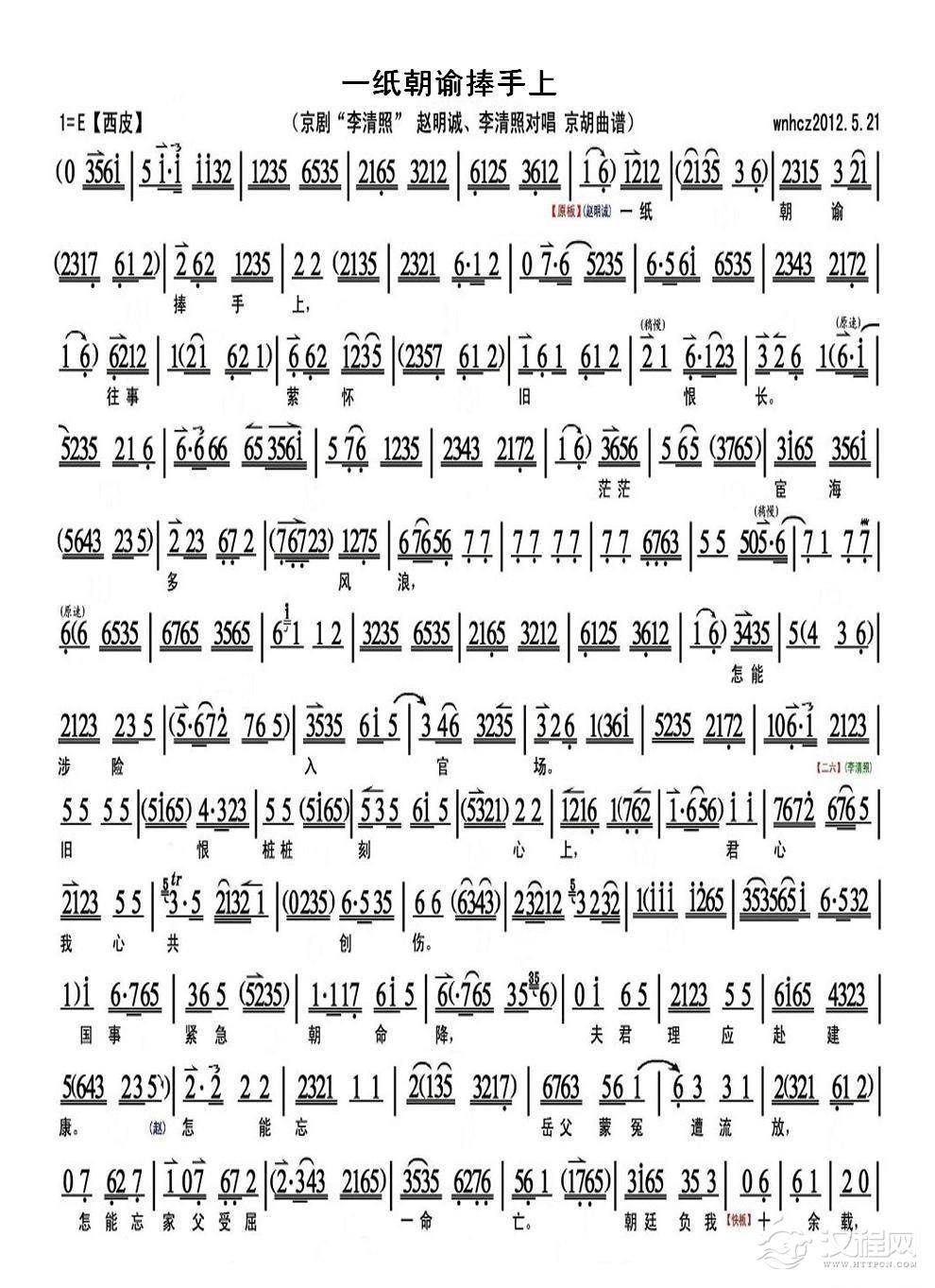 戏曲曲谱自嘲(京剧戏歌)
