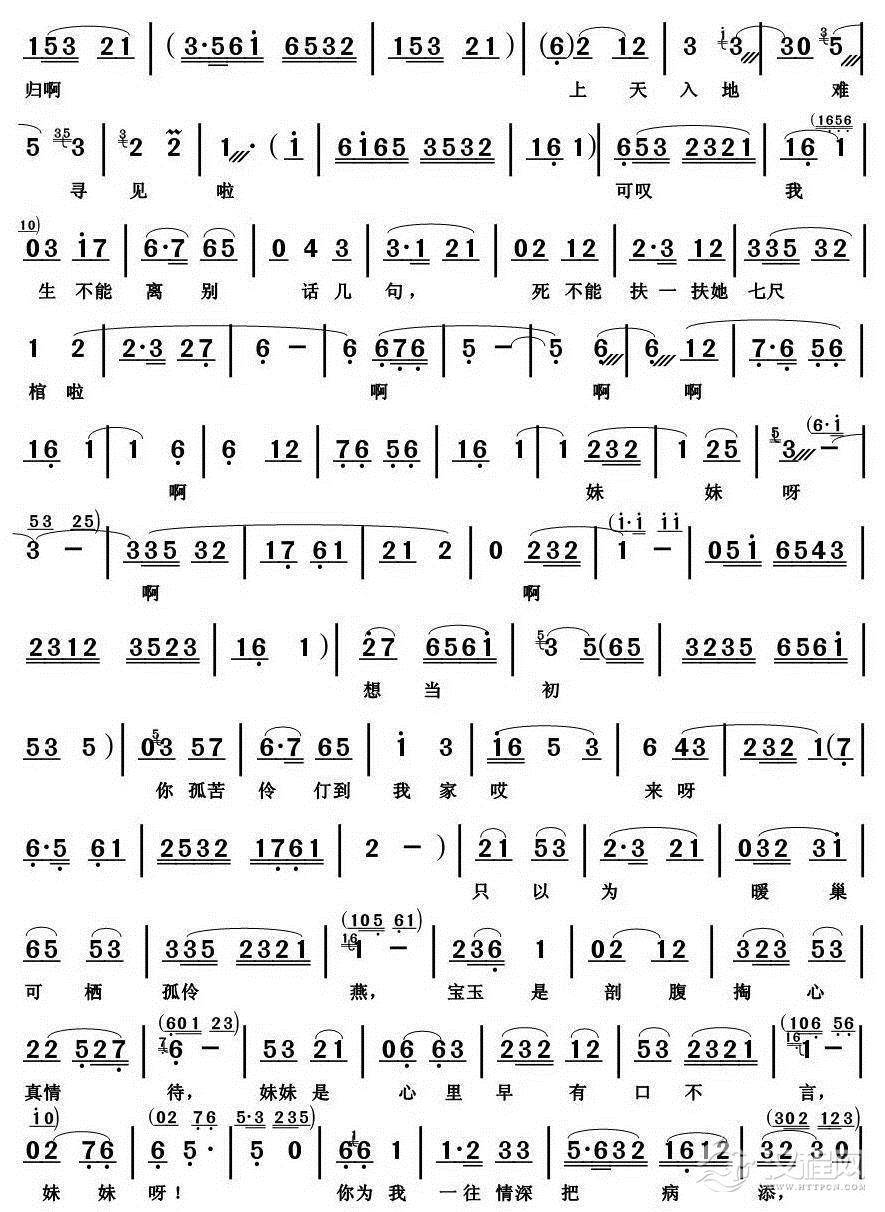 戏曲曲谱[秦腔]奴的夫遭陷害尸骨未葬(《三上轿》唱段)