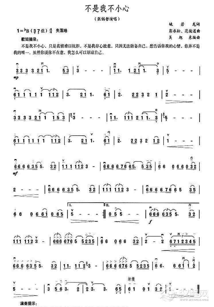 二胡曲谱常用符号说明