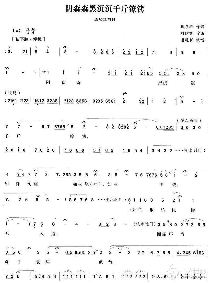 戏曲曲谱[秦腔]玉堂春含悲泪忙向前进(《苏三起解》唱段)