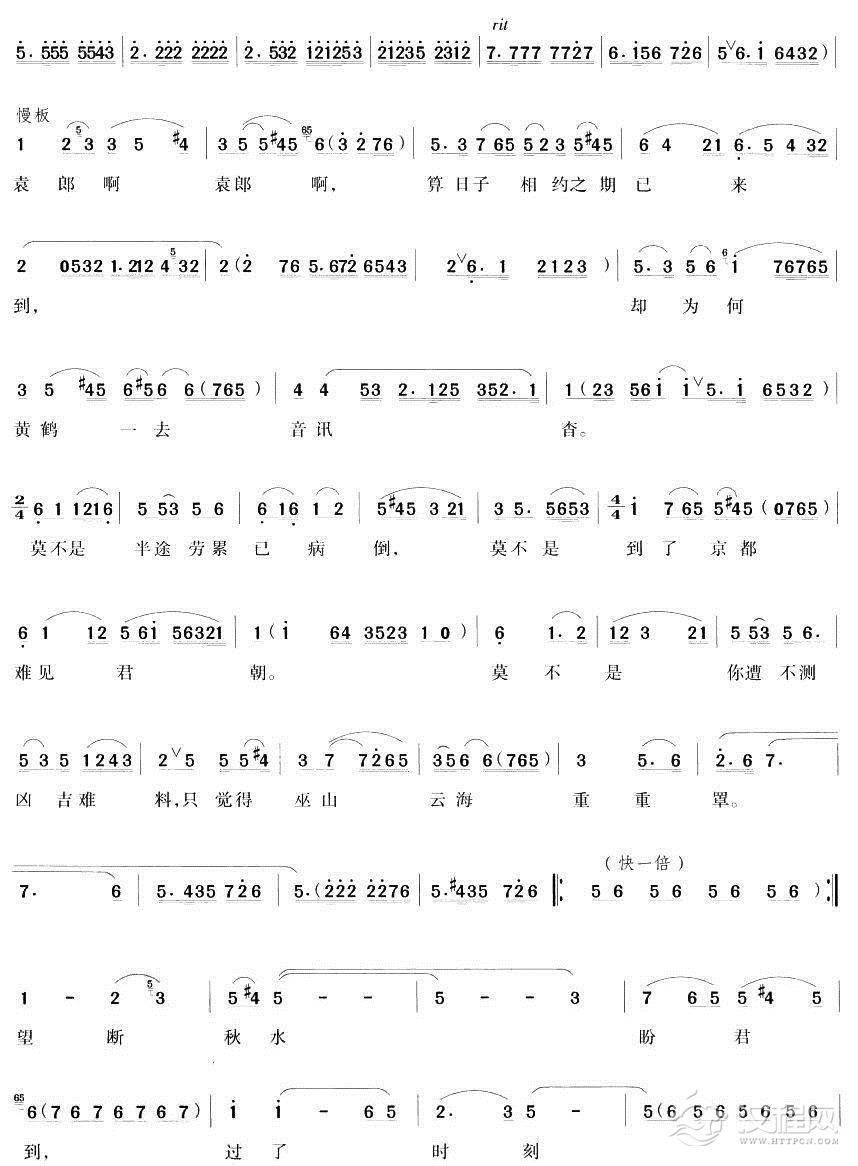 戏曲曲谱[川剧]冷清清潘郎今何在(《玉簪记·秋江》陈妙常唱段)