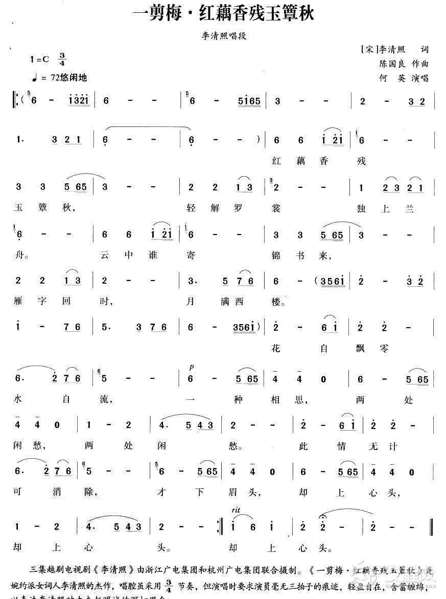 戏曲曲谱[川剧]冷清清潘郎今何在(《玉簪记·秋江》陈妙常唱段)