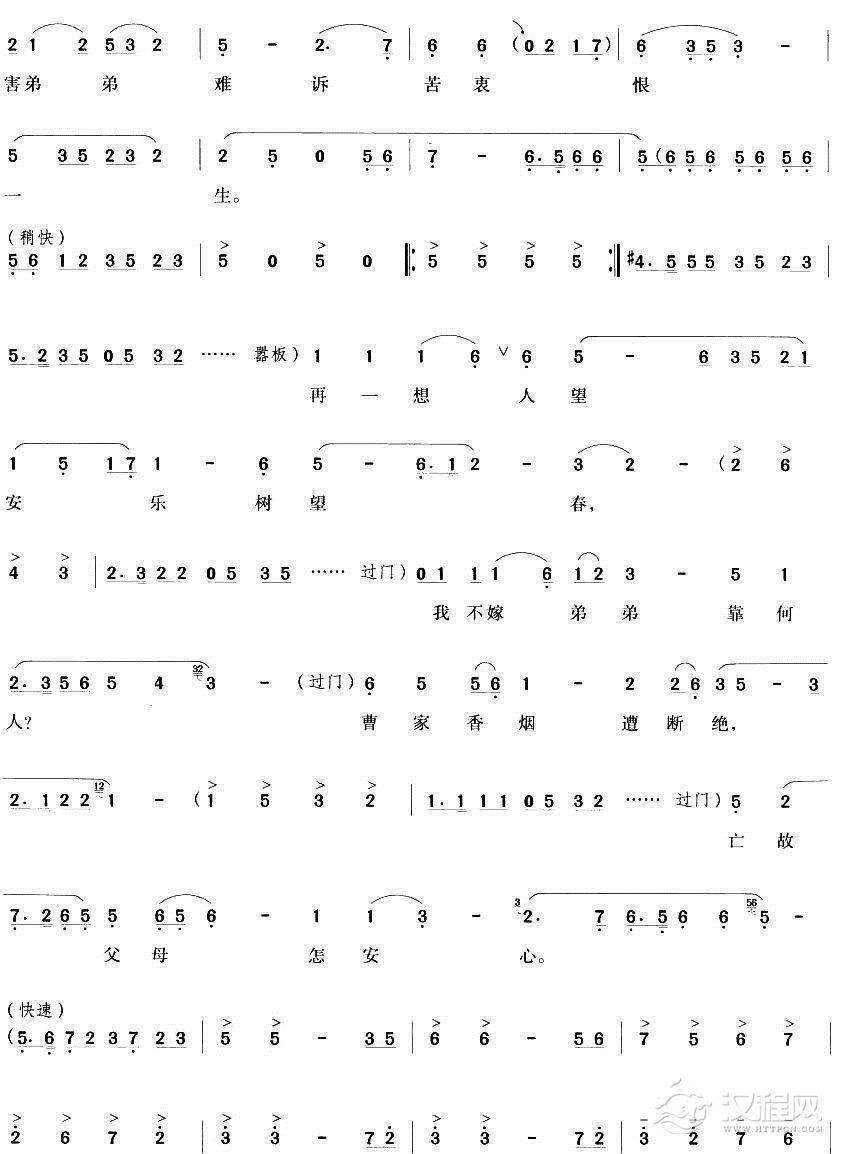 戏曲曲谱三娘泣血诉离恨(白兔记》刘知远唱段)
