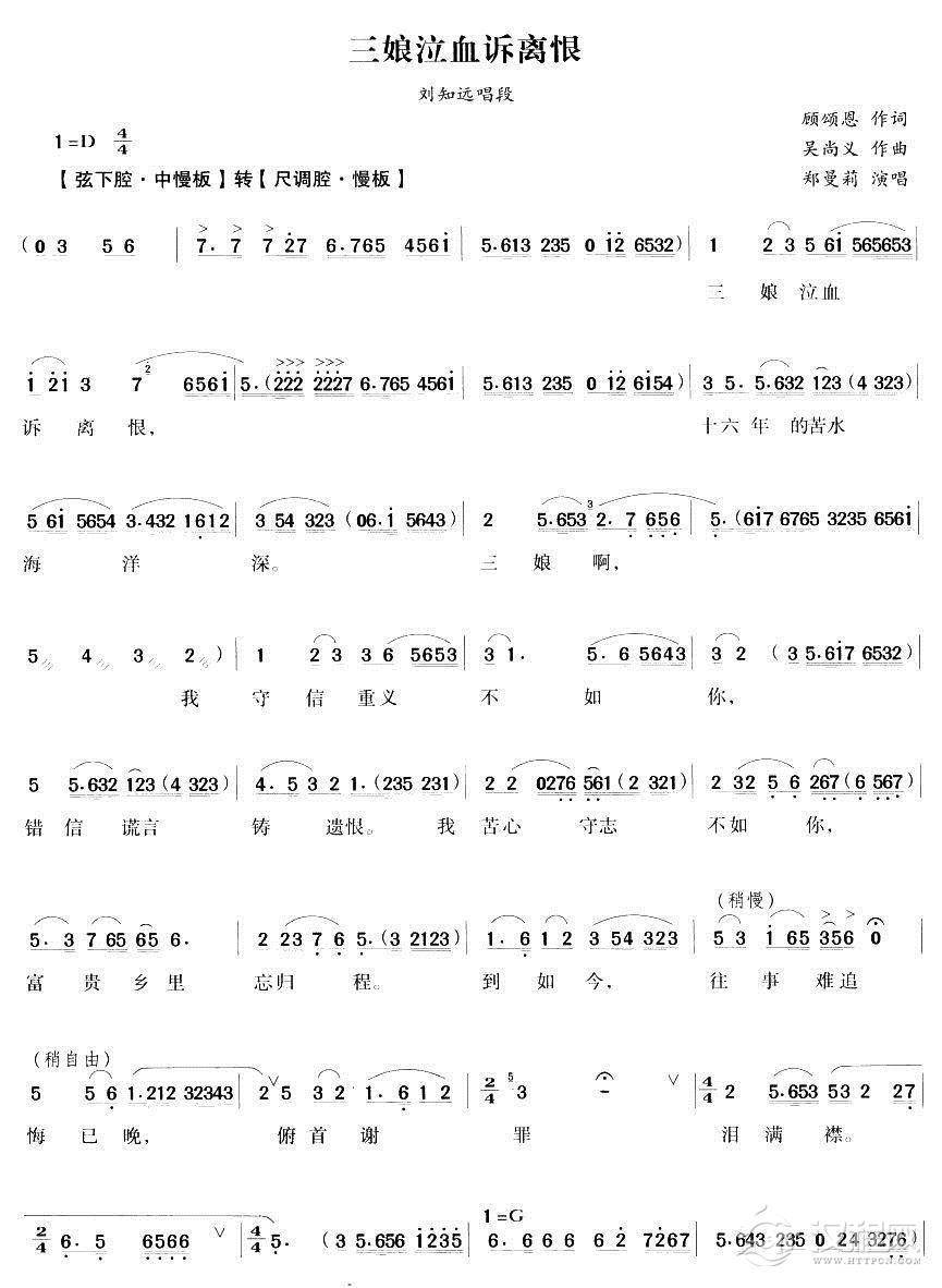戏曲曲谱昨夜是冷宫日月长(《宫墙柳》纪宫柳唱段)