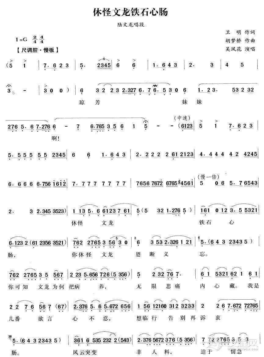戏曲曲谱文龙慢举手中剑(《陆文龙》乳娘唱段)
