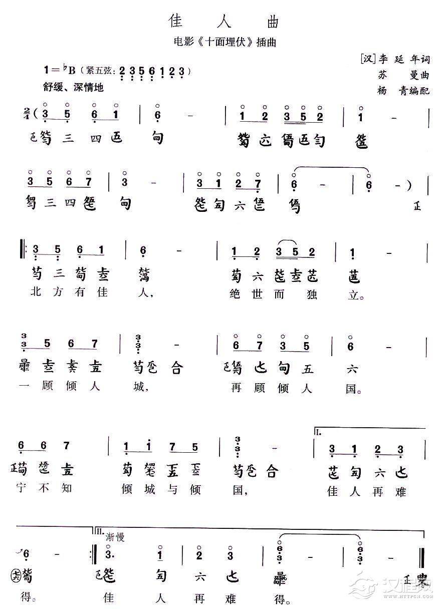 佳人曲(电影《十面埋伏》插曲、古琴谱)
