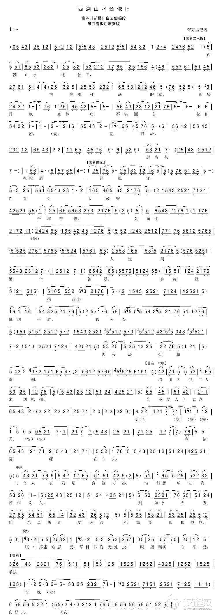 戏曲曲谱[秦腔]长夜漫漫星斗远(《西湖遗恨》裴瑞卿唱段)