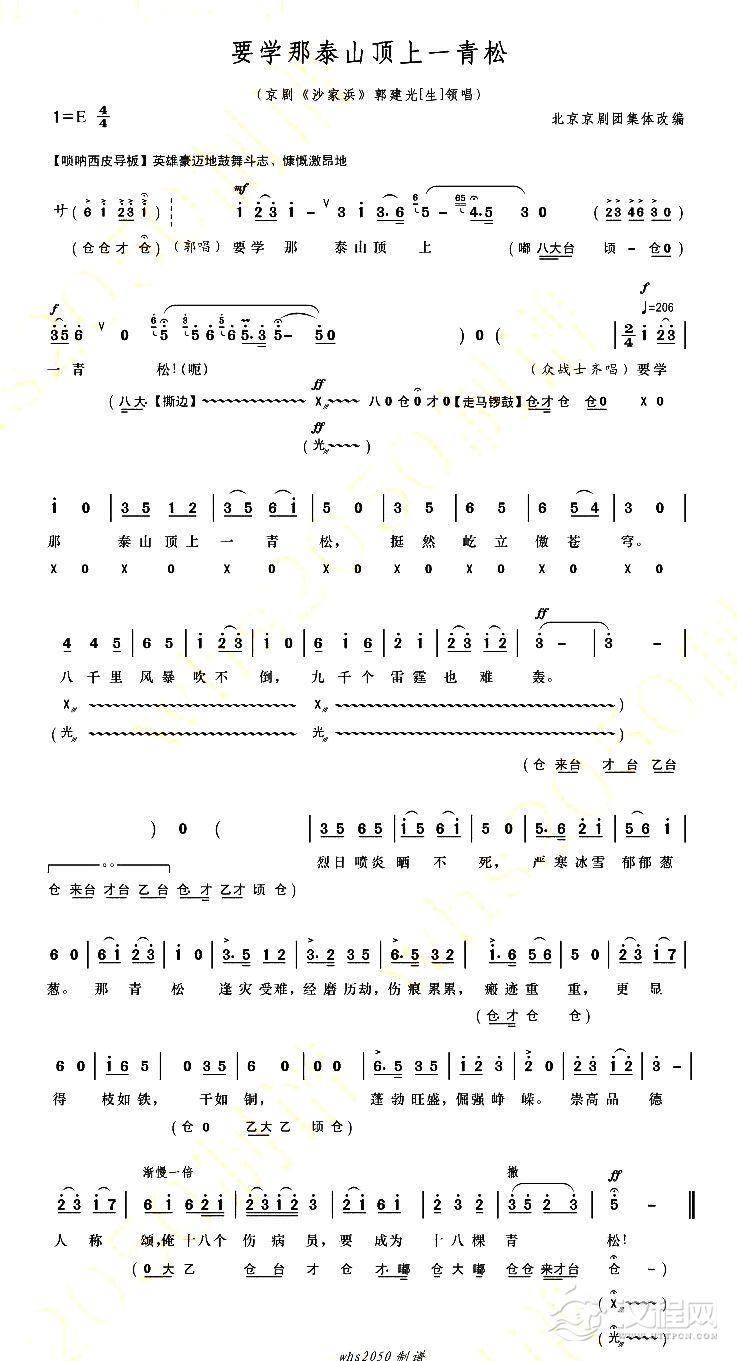 戏曲曲谱智斗(《沙家浜》选段)