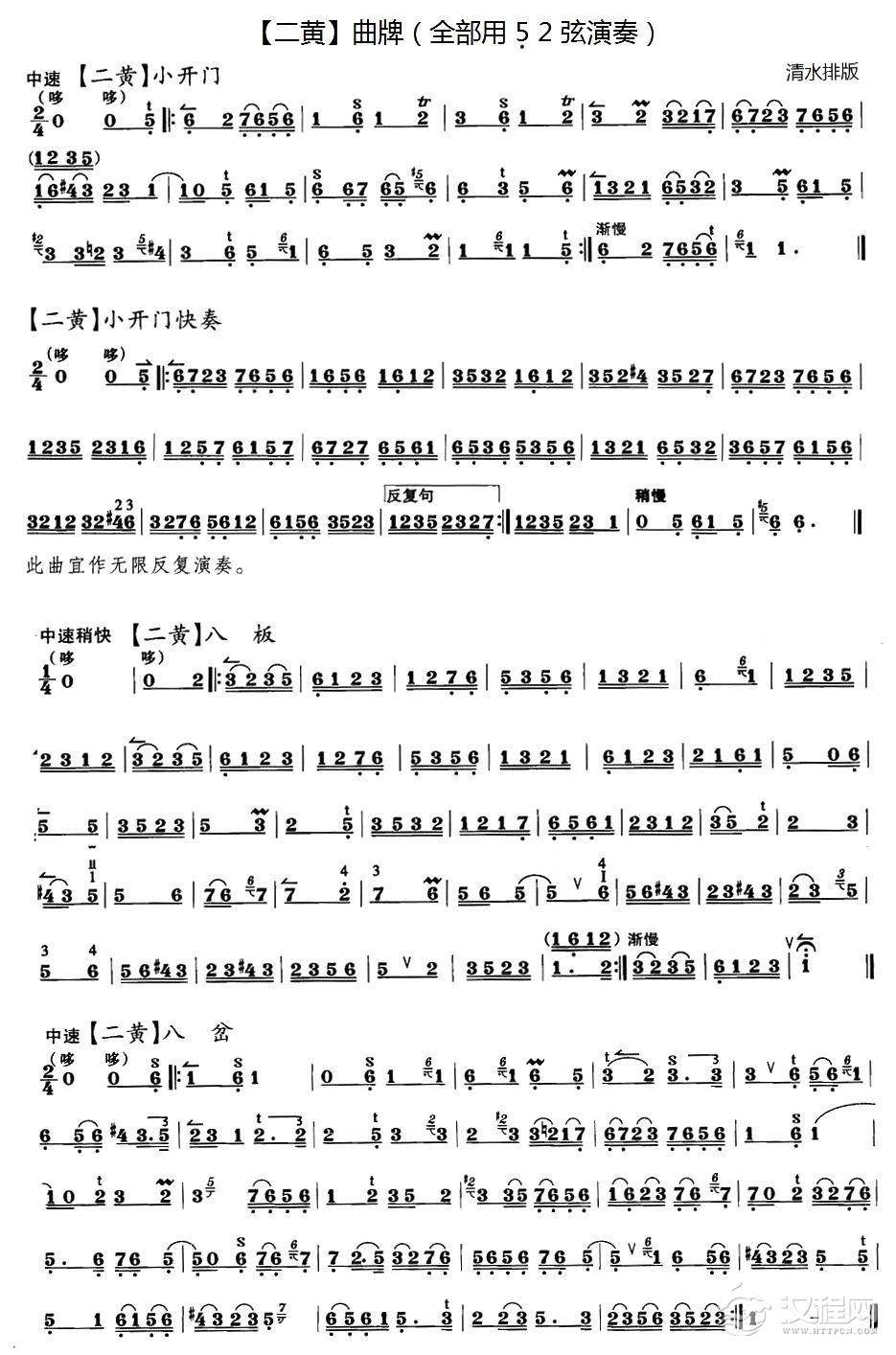 戏曲曲谱西皮曲牌练习:小开门、柳青娘、海青歌、山坡羊、寄生草、洞房赞