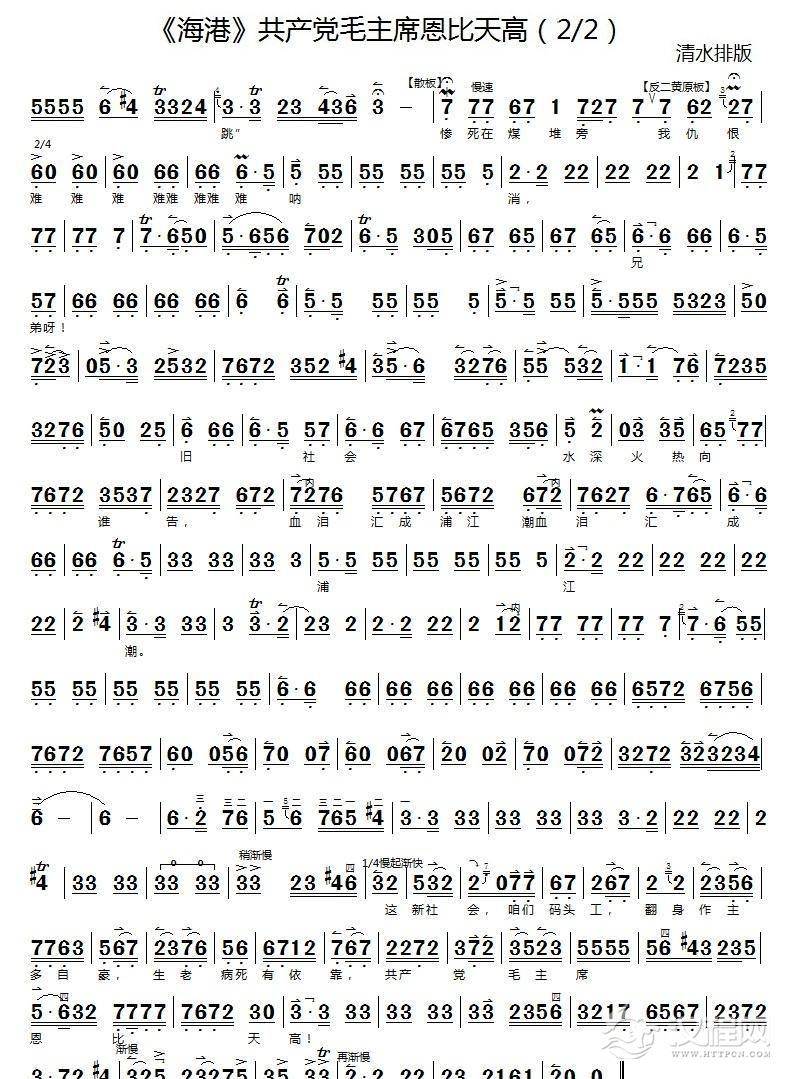 曲谱大全唱支山歌给党听(二胡独奏曲谱)