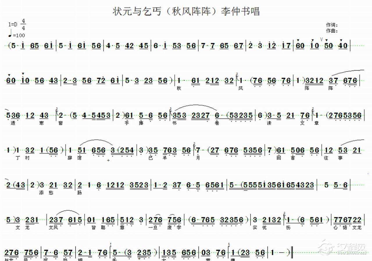 戏曲曲谱小文龙惨切切(《状元与乞丐 选段)