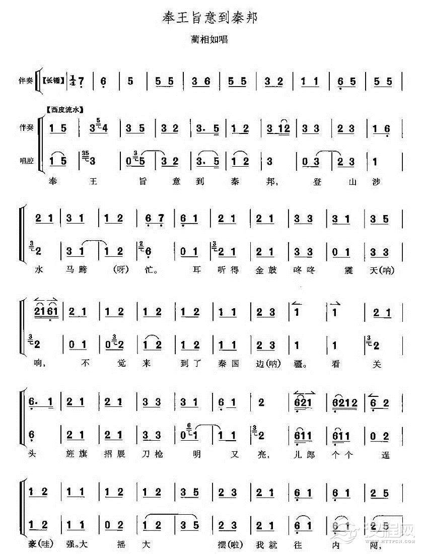 戏曲曲谱秦王做事真无理(《将相和》蔺相如唱段)