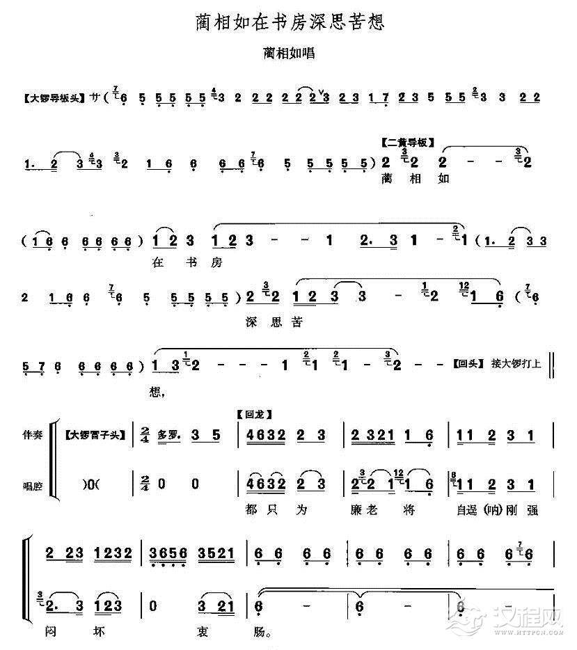 戏曲曲谱蔺相如暗思忖吉凶难料(《将相和》蔺相如唱段)